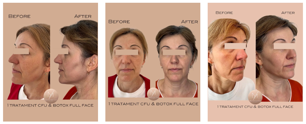 🔹 Înainte de tratament, specialistul va evalua starea pielii și zonele ce necesită îmbunătățiri. 🔹 Se aplică un gel conductor pe piele, apoi dispozitivul CFU emite unde ultrasonice focalizate în straturile profunde ale pielii. 🔹 Ultrasunetele produc puncte microscopice de coagulare termică la nivelul dermului profund, stimulând fibroblastele să genereze colagen nou. Acest proces determină un efect de lifting natural și o îmbunătățire vizibilă a fermității pielii. 🔹 Procedura durează între 30-90 de minute, în funcție de zona tratată, iar pacientul poate reveni imediat la activitățile zilnice.